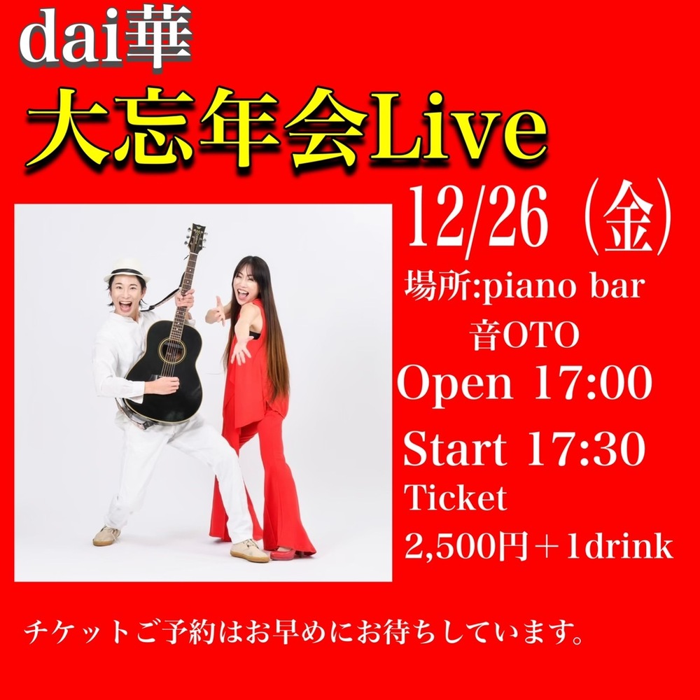 今年の締めくくりとしてdai華と一緒に大忘年会ライブ開催します😄